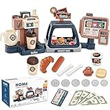 - Juguete funcional para máquina de café con sonido, incluyendo mango de café, prensa de polvo, jarra de crema, tazas de café, los niños pueden verter agua para hacer café, jugar todo el proceso...