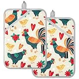 - Material: estos guantes de horno de gallo y soportes para ollas están hechos de material de poliéster, la superficie con silicona y el forro está relleno de algodón suave, que es cómodo al tacto,...