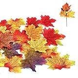 - Protección del paquete: 100 piezasdecoración otoño, color a juego como desee. Hechas de un material de poliéster duradero que hace que estas hojas de arce de imitación sean muy realistas, suaves...