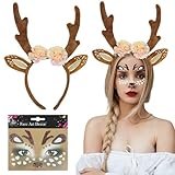 - Talla única: 2 diademas de cuernos de ciervo con 2 tatuajes de cara de ciervo, aproximadamente 30 x 25 cm y 12,7 x 12 cm. El estilo es lindo, los cuernos de ciervo tienen una forma novedosa, que...