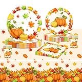 - Contenido del paquete: juego de 48 platos de papel desechables con encantadores diseños de temática otoñal con hojas de arce y calabazas