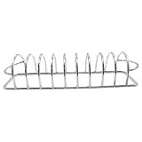 - Diseño robusto de acero inoxidable: este estante para costillas está fabricado con acero inoxidable resistente que resiste altas temperaturas mientras mantiene su forma en numerosas parrillas.