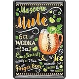 - Receta de cóctel de letrero de hojalata: "Moscow Mule". El bonito texto y el diseño de un bonito vaso de cóctel hacen de este cartel un atractivo absoluto y embellecerá tu bar, mostrador, pub,...