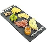 - 🧀 BANDEJA DE PIZARRA CON ASAS: Plato rectangular de piedra de pizarra. Dimensiones: 42 x 20 cm. | Las asas están premontadas y listas para su uso. | Ideal como bandeja para comida o como...