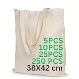 - POLHIM Bolsas de algodón 38×42 cm – Beige – packs 2/6/12/24/48, lisas, reutilizables, asas largas, 100 % algodón