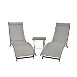 - El asiento de malla acrílica y el marco de aluminio inoxidable colocan esta tumbona firmemente en la categoría de resistente a la intemperie.